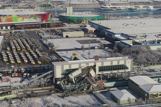 Al salirse de la vía, el convoy impactó contra un paso elevado, que se desplomó sobre algunos de los vagones.