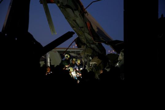 ANKARA, TURKEY - DECEMBER 13 : Rescue workers evacuate injured passengers after high-speed train crashed in Turkish capital Ankara on December 13, 2018. (Photo by Dogukan Keskinkilic/Anadolu Agency/Getty Images)