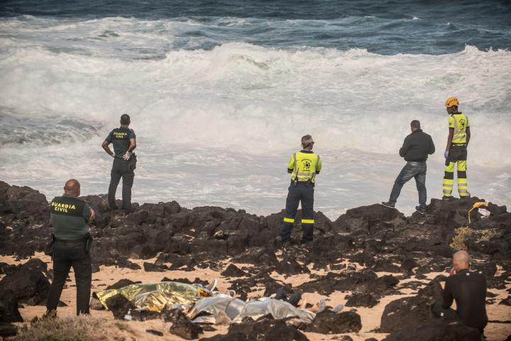 Una vez en el lugar, los bomberos del Consorcio de Lanzarote rescataron a cuatro personas con síntomas de lipotimia pero a salvo y recuperaron cinco cuerpos del agua, numero posteriormente ampliado a seis.