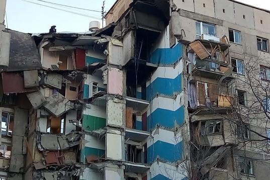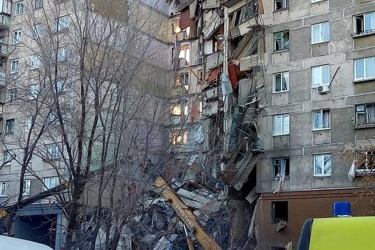MAGNITOGORSK, RUSSIA - DECEMBER 31, 2018: The site of an apartment building collapse. A suspected domestic gas blast caused a partial collapse of a residential building at 164 Karla Marksa Prospekt Street killing three people. Chelyabinsk Region...