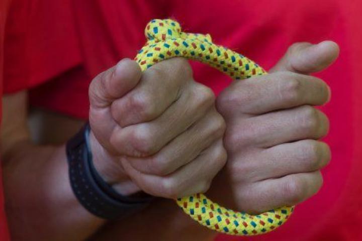 Así, Antonio se ha convertido en guía y casi entrenador de Ana Lucía. Ambos corren unidos por una braga de cuello que sostienen en las manos. Él no calla en todo el recorrido. Ella guarda silencio. Va sintiendo las subidas, los giros y el ritmo de carrera en las brazadas de su guía, que va gritando palabras de ánimo, de motivación.