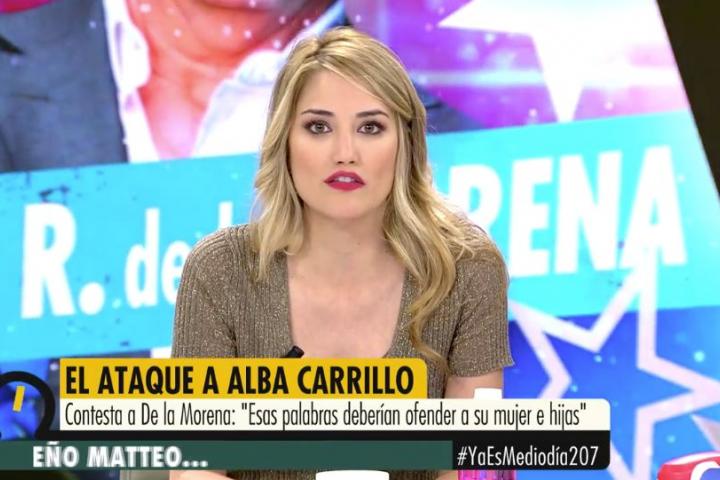 Alba Carrillo ha contestado en Ya es mediodía (Telecinco) a las palabras que le dedicó el periodista José Ramón de la Morena, presentador de El transistor de Onda Cero, quien le llamó “señorita de compañía”.