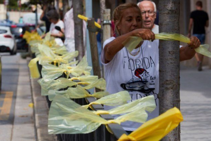Durante un paseo por el municipio, los dirigentes del partido naranja se han acercado a una valla donde había varios lazos amarillos colgados, los han retirado y los han depositado en una bolsa de basura. Minutos después y cuando ya se habían ido, vecinos del pueblo han vuelto a colocar lazos amarillos en la misma valla.