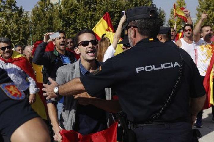 Pero una vez concluida la reunión, Alberto Garzón ha denunciado que un "grupo nazis" ha impedido que él y el resto de políticos abandonasen el recinto. Así lo ha denunciado en Twitter: