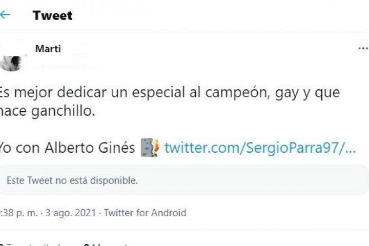 Alberto Ginés, medalla de oro también en Twitter por su brutal respuesta a este comentario