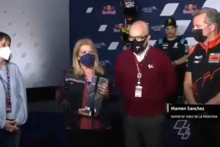 La regidora andaluza ha tenido que hablar en el idioma de Shakespeare con motivo del Gran Premio de Jerez de motociclismo, pero más bien lo ha hecho en el idioma de Ana Botella.
