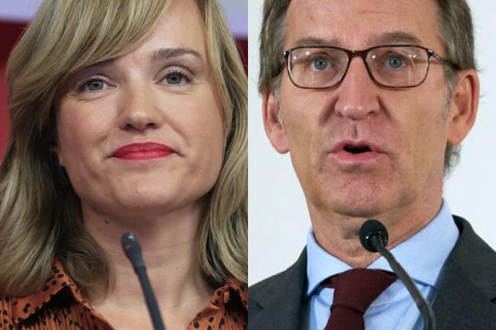 La ministra de Educación, Pilar Alegría, y el presidente del PP, Alberto Núñez Feijóo; en sendas imágenes.EFE | Getty Images