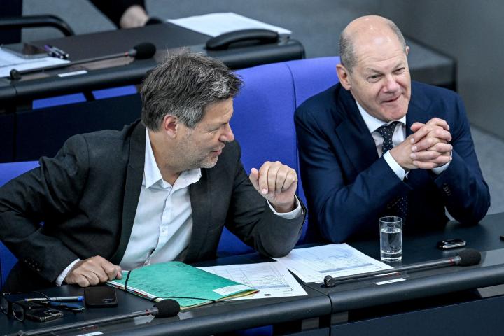 Robert Habeck, vicecanciller, y el canciller Olaf Scholz, en el Bundestag.picture alliance via Getty Images