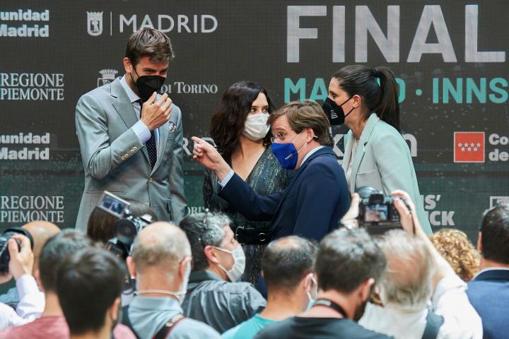 Almeida ha hecho un comentario a Piqué a través del periodista Joseba Larrañaga, que presentaba el acto: “El alcalde me está presionando para que te diga si Messi va a venir al Atleti este año como hizo Luis Suárez porque les falta por ganar la Champions”.