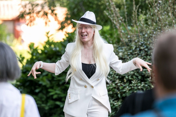 Momento en el que los treinta asistentes, sí, ha leído bien, treinta, son invitados a compartir sus condiciones de salud. Y una niña se siente segura para ser valiente y decir ante un montón de extraños que también es dislépsica. Y una mujer adulta para compartir que tiene una enfermedad neurodegenarativa, que ni de lejos se nota durante el alegre paseo que es este espectáculo. De nuevo, nada de que hay que normalizar o igualar. Aquí sin más se iguala, se normaliza y ya está. Mostrando que es más fácil hacerlo que decir que se va a hacer.
