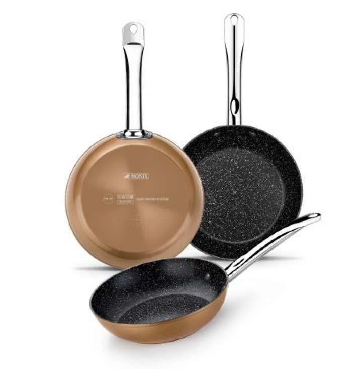 Juego 3 sartenes antiadherentes de aluminio de la marca Monix.