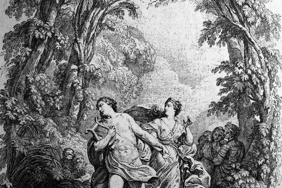 Según la mitología griega Orfeo descendió al inframundo en busca de su querida Eurídice, la cual había muerto a consecuencia de la mordedura de una serpiente. Los dioses del averno –Hades y Perséfone- permitieron, de forma excepcional, que la joven regresase al mundo de los vivos con Orfeo con una sola condición: que no mirase atrás hasta haberlo abandonado completamente.