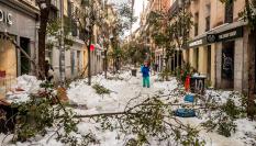 La nieve se está volviendo negra en las calles de Madrid. Apenas se puede transitar entre bloques de hielo por la capital. Muchos vecinos han tenido que sacar sus palas y abrir camino ante la falta de administración. Diez días después, la ciudad no sabe cuándo volverá a la normalidad, esperando que lleguen duros vientos y con la amenaza de que sus vías se conviertan en ríos de agua.