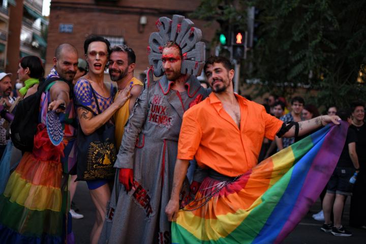 Los asistentes al pregón del Orgullo LGTBI de Madrid, reunidos en la plaza Pedro Zerolo, han coreado este miércoles, en el arranque de la celebración, ‘Almeida, capullo, devuélveme el Orgullo’ después de que la maestra de ceremonias, La Plexy, lo haya manifestado desde el escenario.