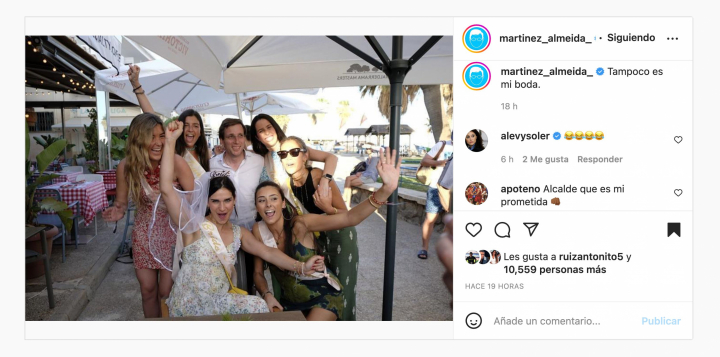 “Tampoco es mi boda”, ha escrito Martínez-Almeida en sus publicaciones.