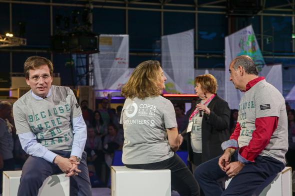 Desde el estrado, ha insultado a Almeida, pero también la presidente estadounidense, Donald Trump, “por abandonar los acuerdos globales de acción contra la crisis climática”.
