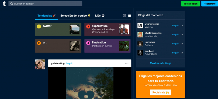 Esta plataforma de microblogging permite publicar todo tipo de contenido multimedia, desde un texto a una imagen o un enlace. Los usuarios, además de poder seguir a otros, pueden optar por hacer sus perfiles privados o no y también editarlos con HTML.