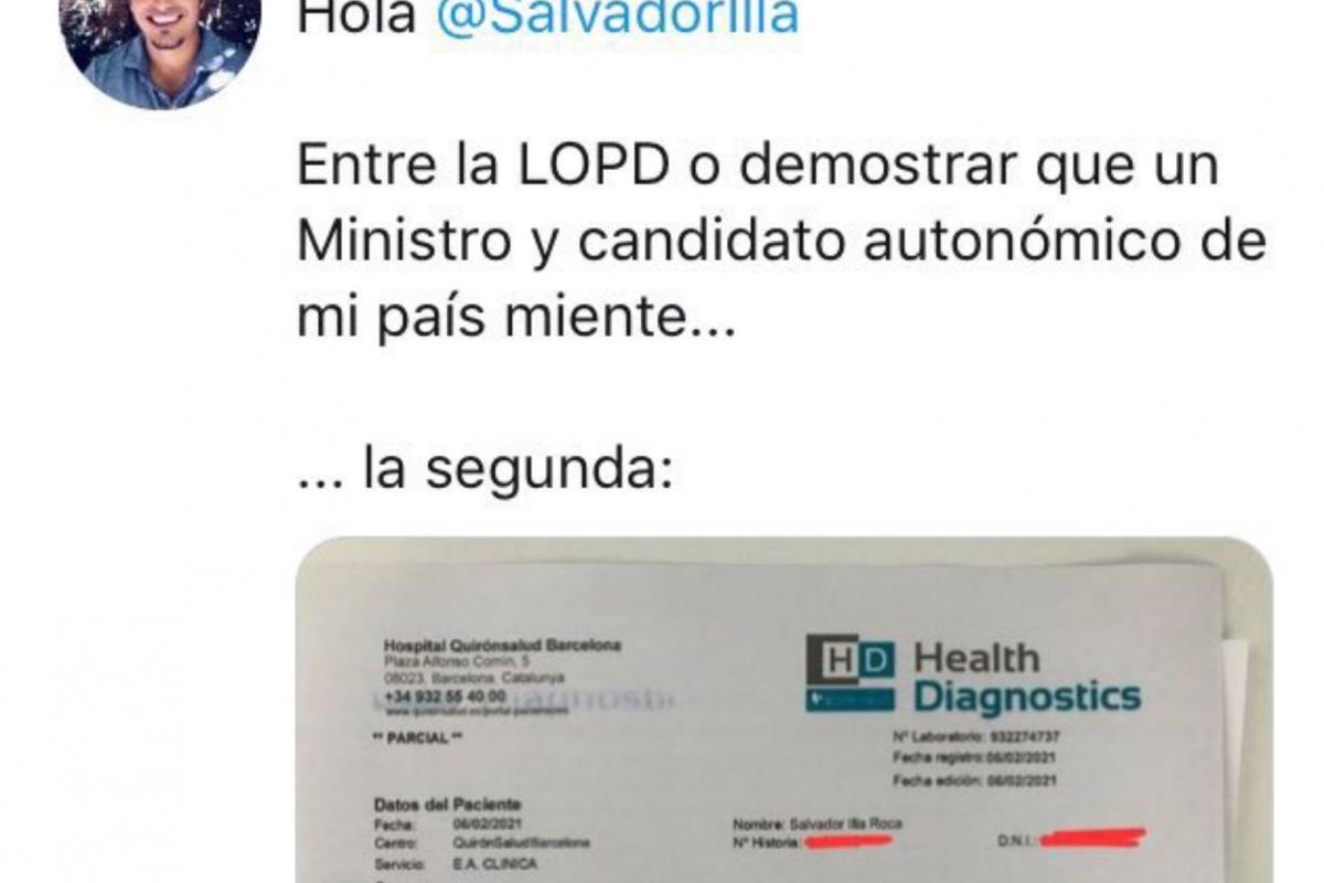 Difundió un supuesto positivo de Salvador Illa, candidato socialista a las catalanas. La clínica ha dicho que es falso.