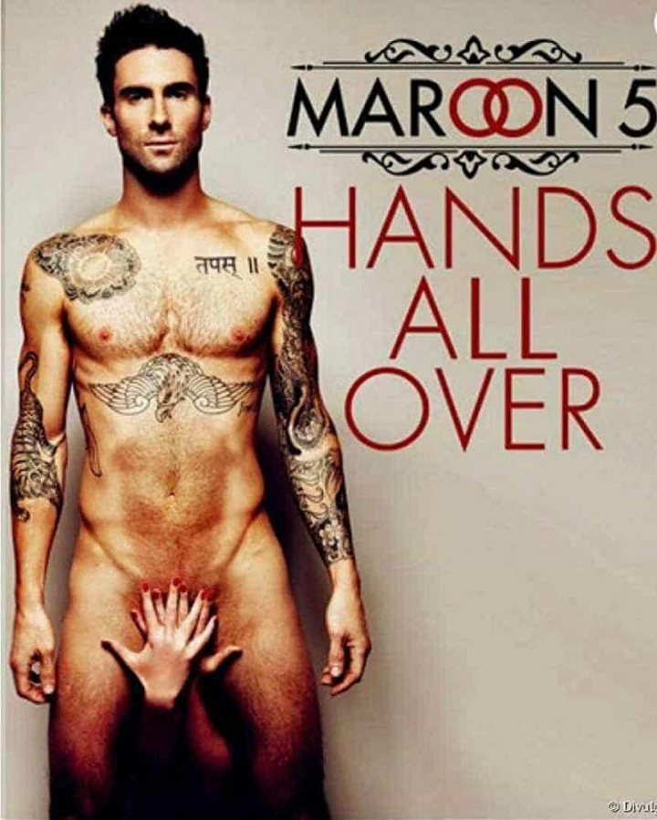 “Las manos por todas partes”. Esa es la traducción literal del título del tercer disco de Maroon 5. Y también lo que quiso mostrar su vocalista Adam Levine en la portada de la edición deluxe del álbum. Un desnudo integral que deja ver todos sus tatuajes, solo tapando sus partes íntimas con manos de mujer. En la carátula de la versión original del disco aparece la modelo Rosie Hardy, también desnuda, sobre una cama.