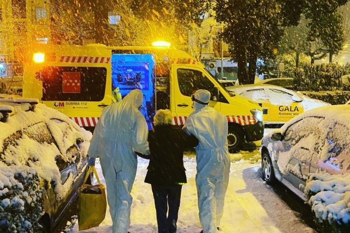 Ana Martín Quintana, técnico sanitario del SUMMA 112 de la Comunidad de Madrid, comenzó a trabajar ayer a las 9. Su turno tendría que haber terminado esta mañana, 24 horas después, pero los relevos no han podido llegar hasta la sede de la UVI 1 en Pirámides (Madrid) por la gran nevada que ha caído en la ciudad durante las últimas horas.