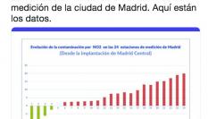 Morgade ha compartido en Twitter una noticia de eldiario.es que recogía unas palabras de José Luis Martínez-Almeida sobre Madrid Central.