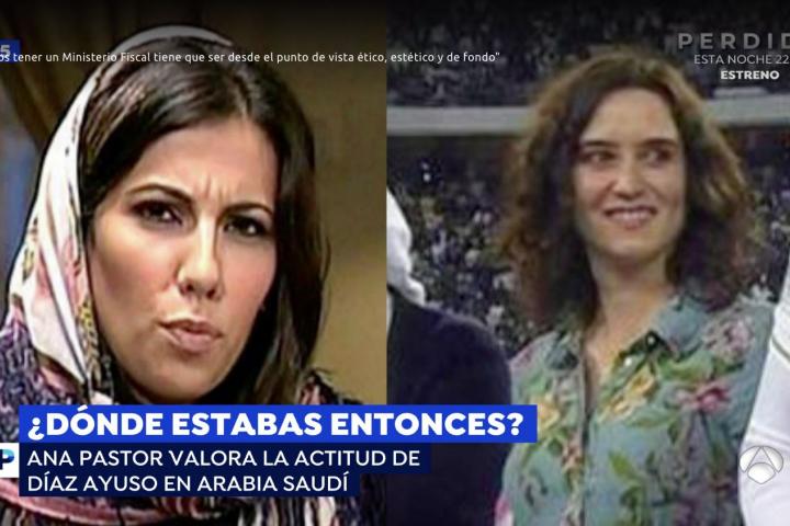 Además, fueron muchos los que en Twitter alabaron a Díaz Ayuso a la vez que comparaban su imagen en Arabia Saudí con una de la periodista Ana Pastor en 2011 frente al presidente de Irán en aquel momento, Mahmud Ahmadineyad, y en la que sí aparecía con velo.