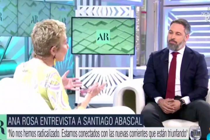 El líder de Vox, Santiago Abascal, ha sido entrevistado este lunes por Ana Rosa Quintana en El Programa de AR. Tanto político como periodista han mantenido un momento de tensión a raíz de la libertad de prensa que propone Vox.