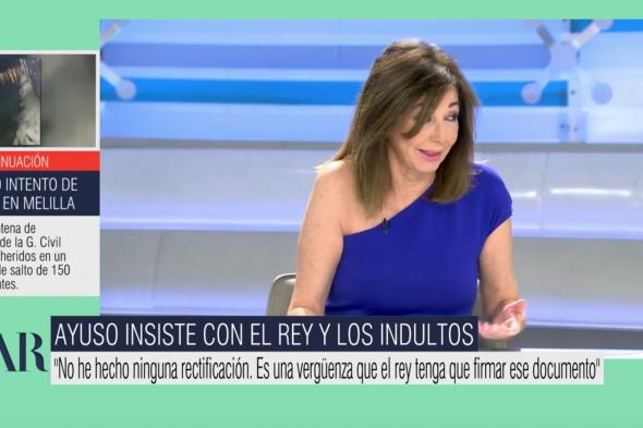 La presentadora ha usado una palabra gruesa para definir el papel que tiene en estos momentos el rey: “Es verdad, yo creo, ¿que es un marrón para el rey firmar los indultos después del mensaje que dio el 3 de octubre? Lo es. Y yo creo que eso es lo que dice Ayuso”.