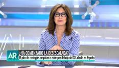 La presentadora ha querido valorar los datos de fallecidos por coronavirus de este viernes: “El recuerdo a las personas que han fallecido es necesario y justo. Es verdad que hoy ha bajado la cifra y me alegro muchísimo, pero todavía son muchísimas las personas que están perdiendo la vida e inmenso el dolor de muchas familias”.