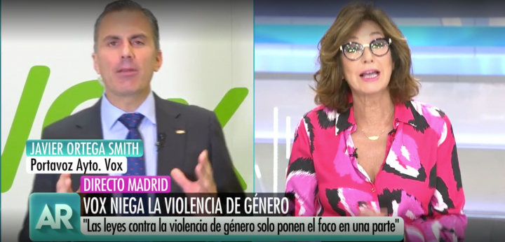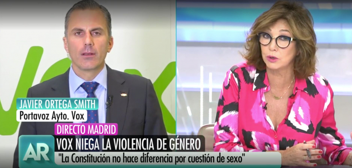 Javier Ortega Smith, portavoz de Vox en el Ayuntamiento de Madrid, ha sido entrevistado este viernes en El Programa de AR de Telecinco, presentado por Ana Rosa Quintana, con quien ha vivido un momento de tensión en pleno directo a costa de la violencia de género.