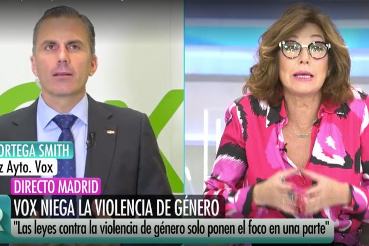 Menos amable ha sido la conversación mantenida con Ana Rosa Quintana, quien ha reprochado a Ortega Smith tanto su actitud como su postura respecto a la violencia de género.