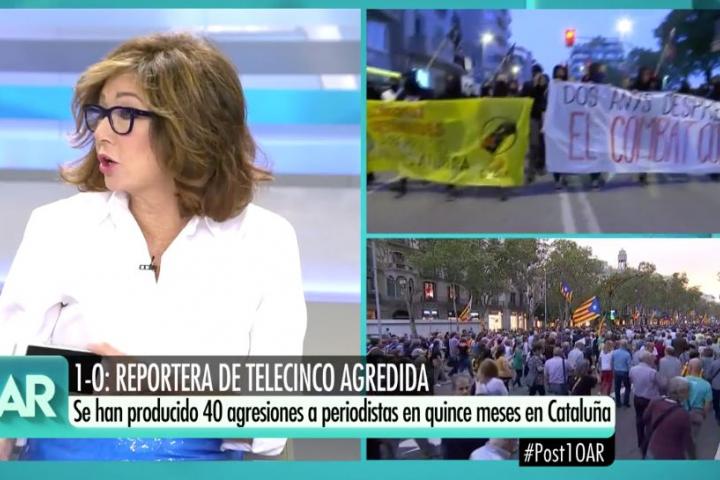 Tras la agresión a una periodista de Telecinco en Barcelona el pasado 1 de octubre, en el espacio televisivo han analizado el papel que han jugado las instituciones catalanas por su trato a algunos periodistas. “Desde la portavocía del Govern de la Generalitat se ha maltratado a periodistas. No queriéndoles contestar en castellano, es que llueve sobre mojado...”, ha asegurado Verónica Fumanal.