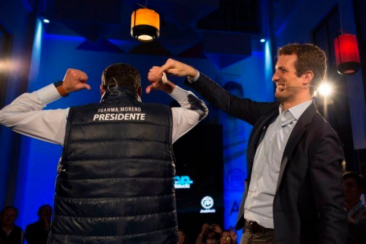 Pero el propio Casado también se ha autocolocado al borde del precipicio diseñando una campaña en la que estará once de los quince días, recorriendo las ocho provincias, con caravana propia paralela a la de Moreno. Algunos de los suyos creen que se expone demasiado. Ese heredero político de Esperanza Aguirre y sus "pitas, pitas" sobre Andalucía. Ahora tiene que batallar él mismo. Es hora de testar si existe el efecto Casado que ha vendido Génova.