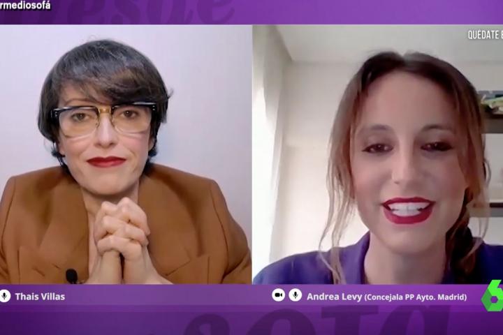 Thais Villas conectó este miércoles con la popular Andrea Levy en El Intermedio (laSexta) para saber cómo está llevando la cuarentena. “Te veo muy mona”, comentó la colaboradora a la concejala de Cultura del Ayuntamiento de Madrid al verla en pantalla.