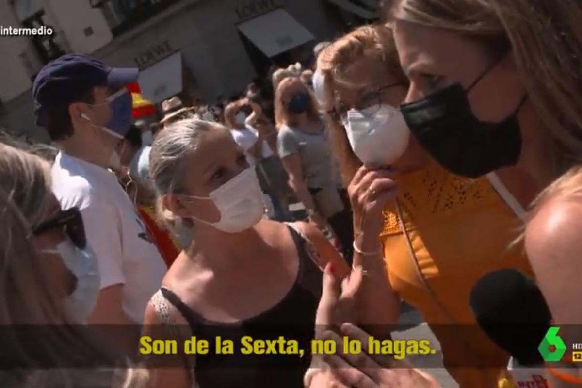 La mujer a la que intentaba entrevistar le respondió diciéndole que únicamente quería pedir la dimisión del Gobierno. ”¿Pero por qué le vas a dar trabajo a esta mierda?”, contestó la manifestante más ultra, antes de abandonar la escena.