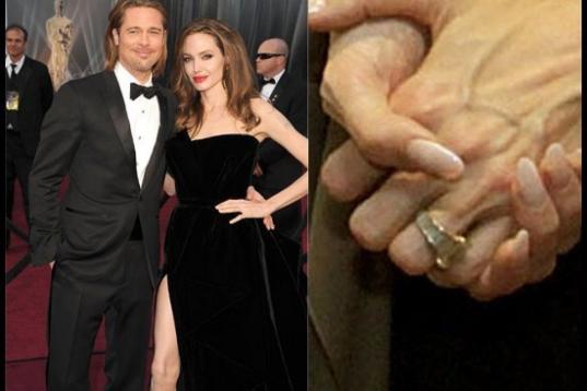 La pareja oficialmente anunció su compromiso en abril de 2012 y Pitt fue quien diseñó este elegante anillo con varios (y enormes) diamantes.