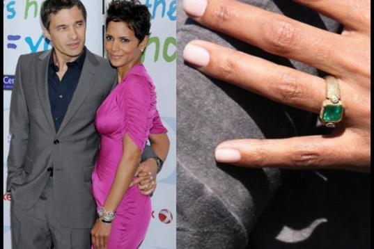 La actriz aceptó una esmeralda en oro en este bello anillo de la marca Roberto Mazlo, que le dio el actor francés en marzo de 2012.