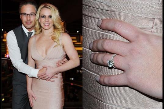 Britney se comprometió con Jason en diciembre de 2011 y le dio este diamante redondo con una banda de platino, trabajado por Neil Lane.