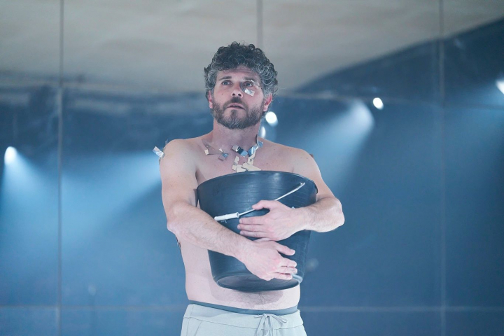 Pocos elementos más hay en escena. Unas sillas de tijera cualquiera. Una tela cubriendo el escenario. Unos papelillos plateados, como metáfora del agua que apaga el incendio. Confetti que se pega al cuerpo de Paul, personaje que interpreta que Ernest Villegas, el que más pierde con el fuego, y que parece que lo va desdibujando, borrando.