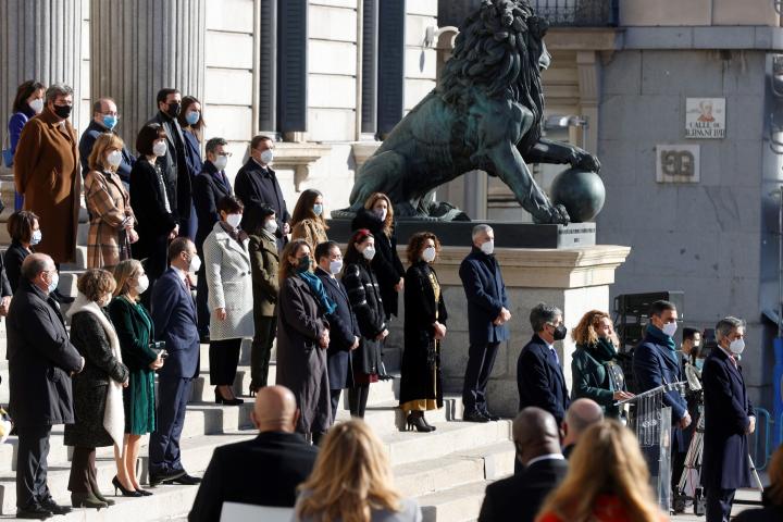 La Constitución ha cumplido este lunes 43 años. Lo ha hecho en un contexto en el que no se prevén grandes cambios en su redacción y con un acto institucional que ha vuelto a celebrarse a las puertas del Congreso. Ante la escalinata de los leones y no el Salón de los Pasos Perdidos, por las restricciones de seguridad ante la pandemia.