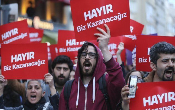 Ante numerosos seguidores, en un discurso encendido, muy similar a los de la campaña de las semanas pasadas en las que arremetió contra países europeos como Holanda y Alemania que impidieron u obstaculizaron mítines electorales de ministros turcos y manifestaciones de inmigrantes turcos a favor de la reforma.