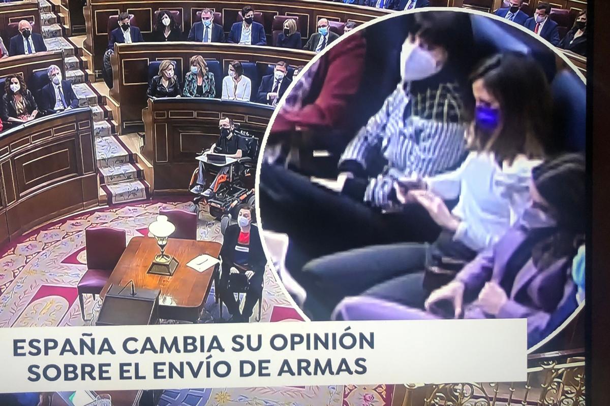 De hecho, han mostrado un vídeo en el que se destacaba el gesto que la ministra de Igualdad, Irene Montero, hizo en su escaño al escuchar al jefe del Ejecutivo: negó dos veces con la cabeza y acto seguido agarró su móvil.