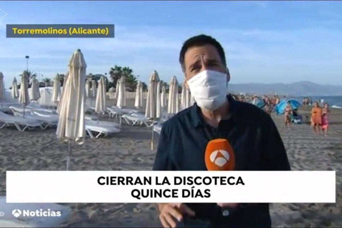 Para informar del cierre durante 15 días de la discoteca en la que el pasado fin de semana un DJ escupió alcohol a los asistentes, la segunda edición de Antena 3 Noticias conectó con Roberto Martín, que se encontraba en la playa del municipio malagueño.