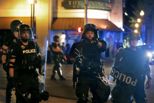 La Policía carga contra los manifestantes en Detroit (Michigan).