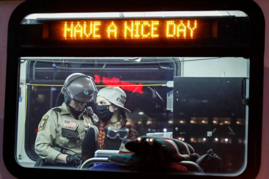 Arrested protesters are loaded onto a transport bus by police on South Washington Street, Sunday, May 31, 2020, in Minneapolis. Protests continued following the death of George Floyd, who died after being restrained by Minneapolis police officer...
