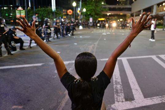 CHARLOTTE, USA - MAY 31: Following the death of George Floyd in Minneapolis, protest in downtown Charlotte turn violent in NC, United States on May 31, 2020 (Photo by Peter Zay/Anadolu Agency via Getty Images)