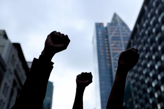 Un grupo de manifestantes en una protesta en Nueva York, Estados Unidos, el 29 de mayo de 2020 en rechazo a la muerte bajo la custodia policial del afroamericano George Floyd.