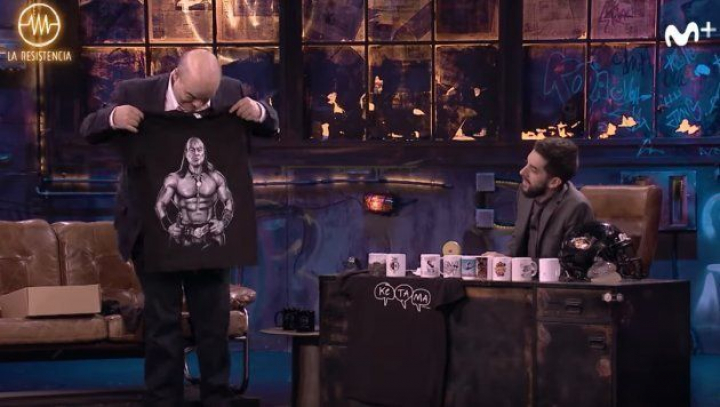 Antonio Resines sorprende a Broncano en 'La Resistencia' (Movistar +) con unas surrealistas camisetas con su cara