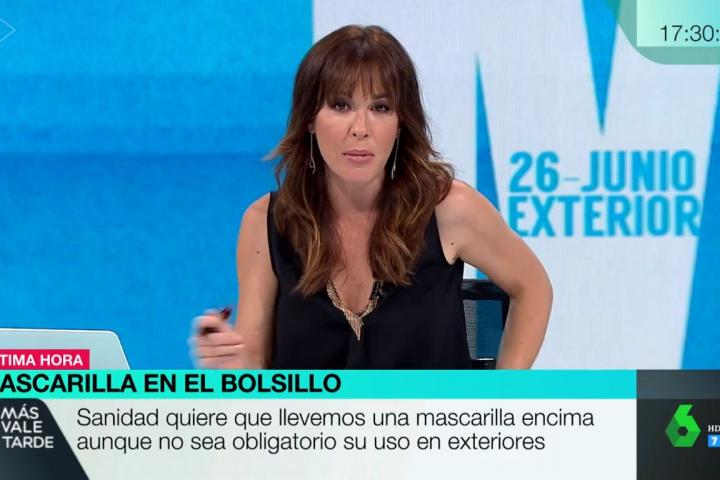 La periodista, que está apurando sus últimos días al frente de un programa que cogerán Cristina Pardo e Iñaki López, decidió ponerse durante el espacio un brazalete con la bandera arcoíris en su brazo derecho.
