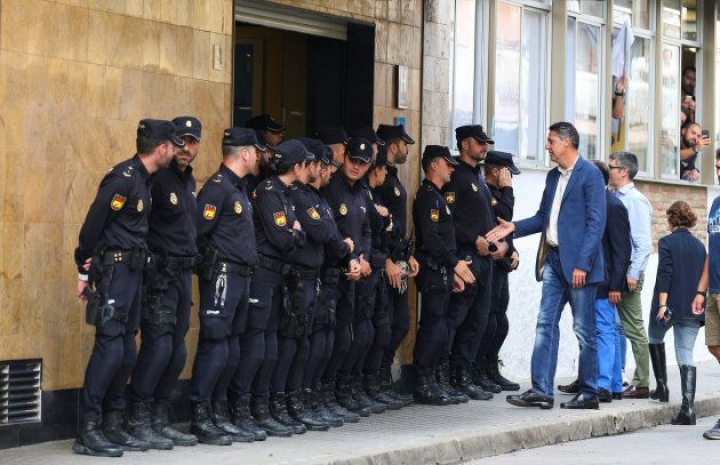 Fue en esa visita cuando, en presencia de Albiol, decenas de agentes de uniforme salieron a las puertas del establecimiento y gritaron frases como "viva España, viva Cataluña" o "no estáis solos", momento en el que la tensión alcanzó su punto más alto.